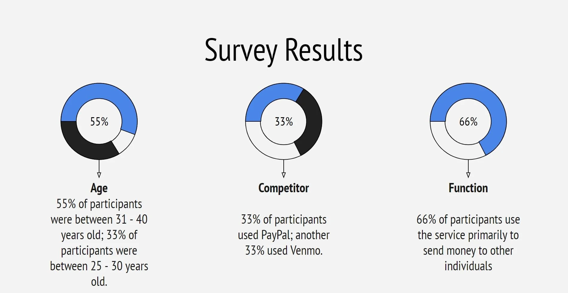 The survey and interviews yielded several important findings. Two-thirds of participants stated that the feature they use the most was transferring money to their contacts. 22% of participants said that some features are hard to access and the icon placement should be more intuitive, while 33% of participants shared that their current money-transferring app makes all transactions public by default and that they wanted more confidentiality with their transfers. The biggest point of friction was an unclear or overwhelming interface that doesn’t clearly identify the primary function of the page.